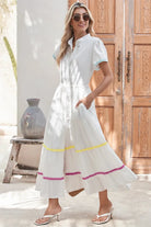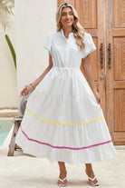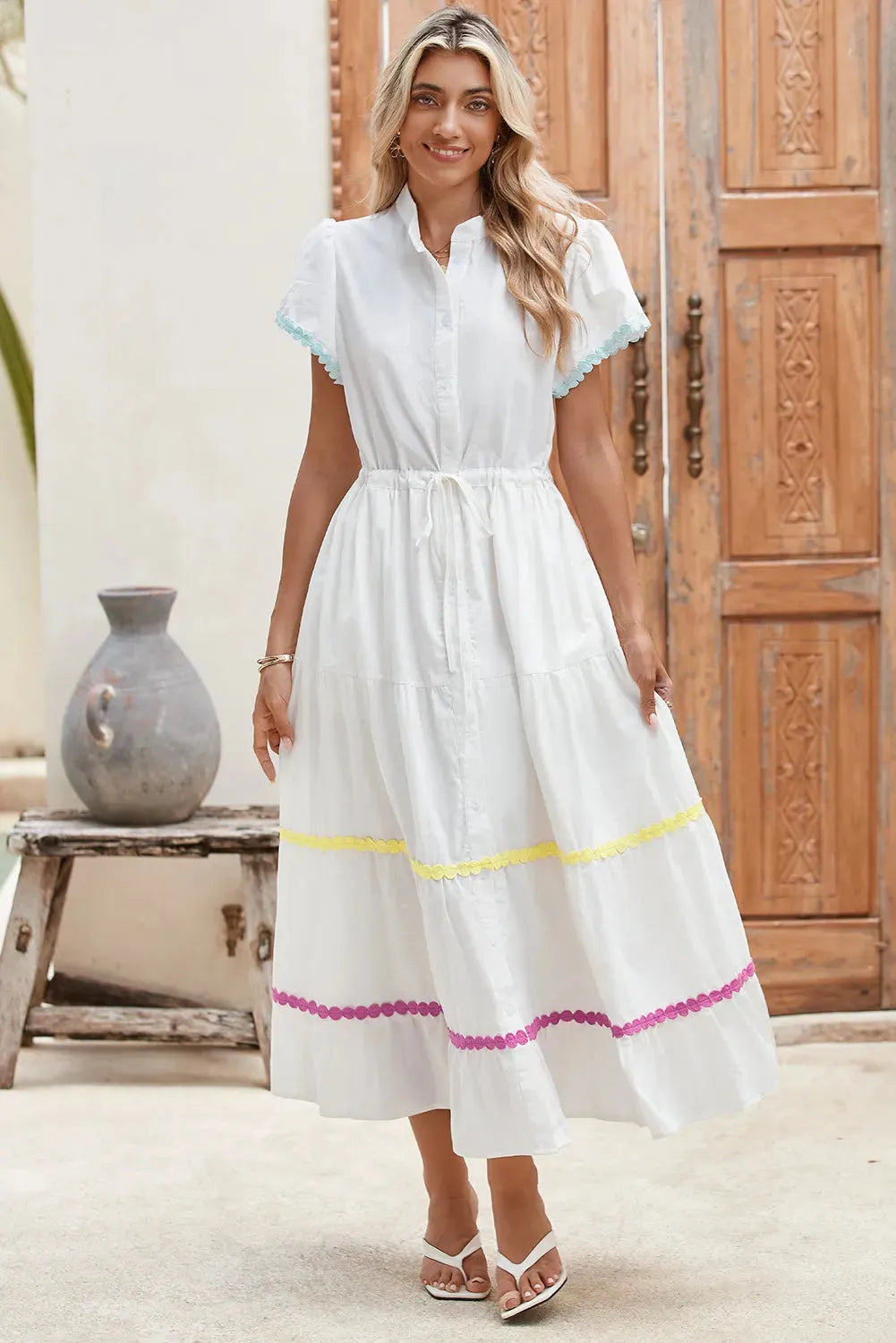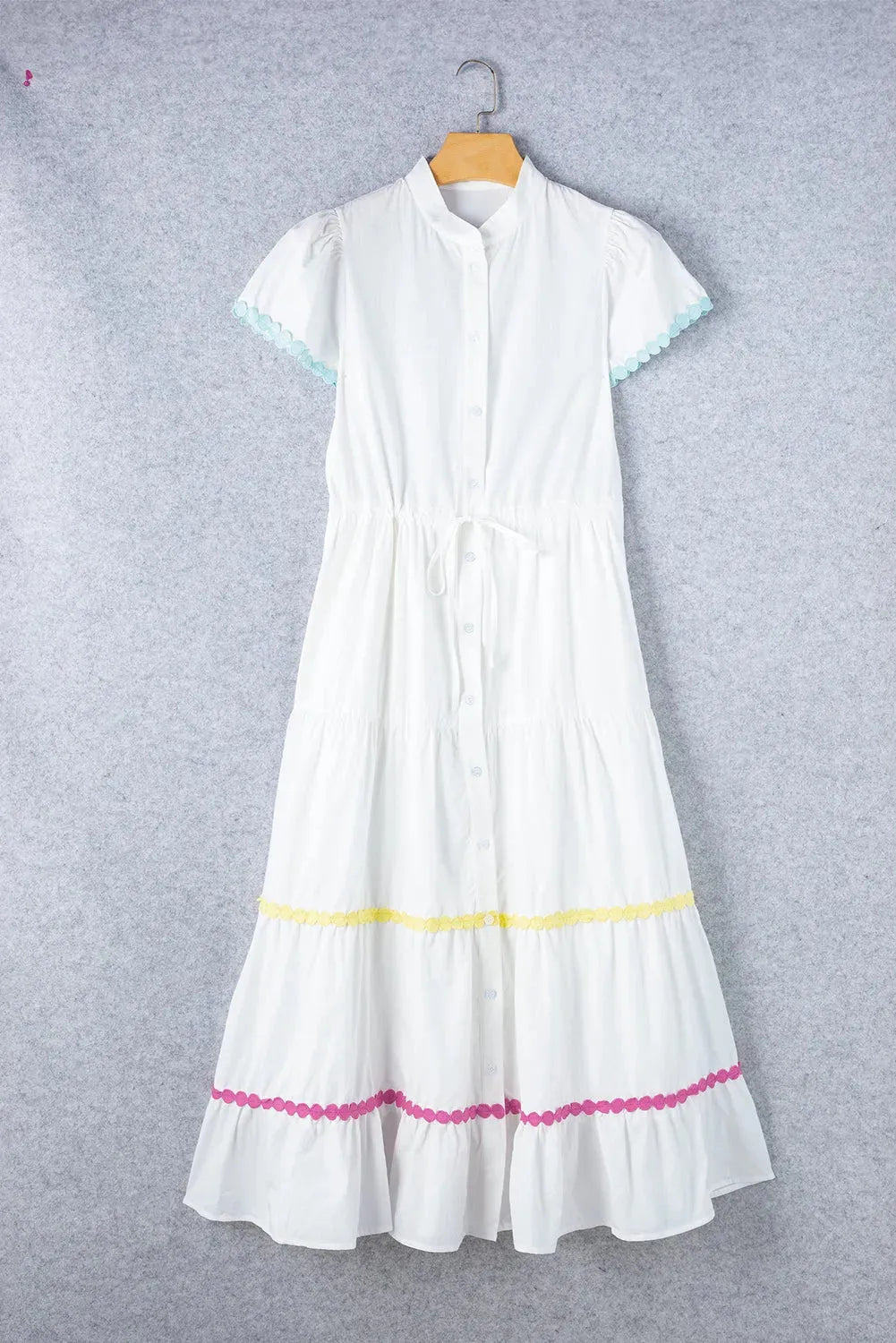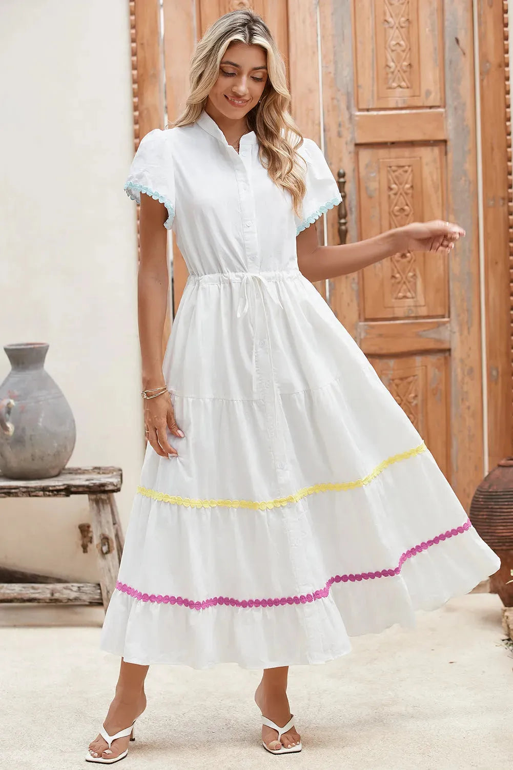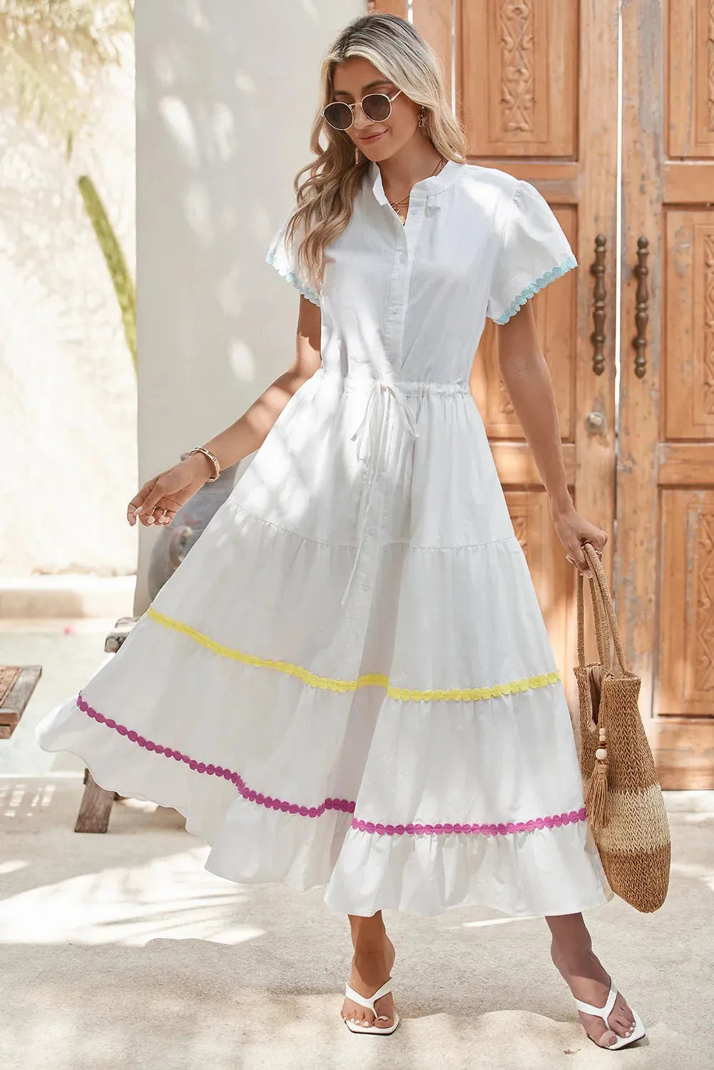 - With its high waist design, this dress accentuates your waistline and creates a flattering silhouette, while the tiered skirt adds a playful and dynamic element to the overall look.