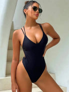 Crisscross V-Neck Sleeveless One-Piece Swimwear