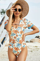 Cutout Printed Short Sleeve One-Piece Swimwear
