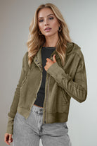 Double Take Waffle-Knit Zip Up Long Sleeve Hooded Jacket