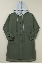 Drawstring Button Up Long Sleeve Hooded Jacket