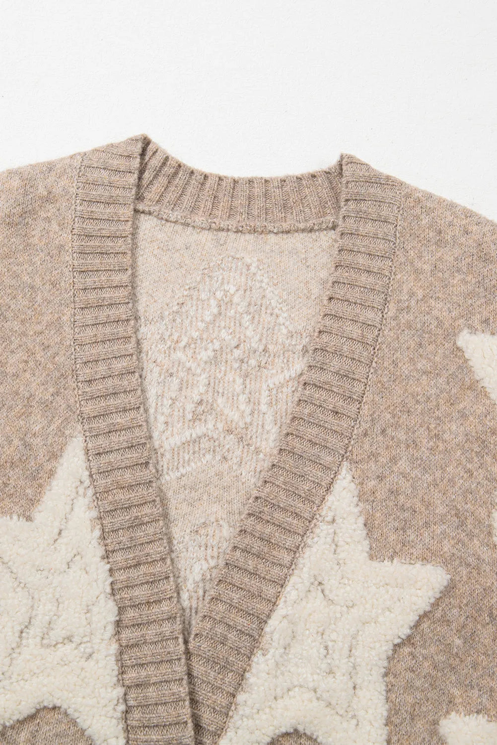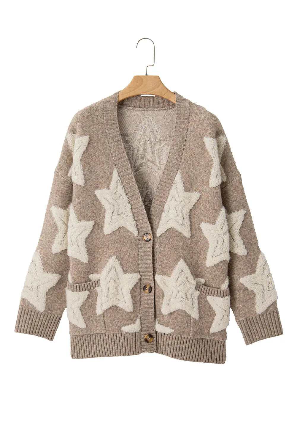 • Elevate your casual look with our cardigan featuring a stylish star design and functional pockets for added convenience. Perfect for a relaxed day out.