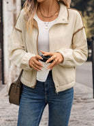 Perfee Zip Up Dropped Shoulder Polar Fleece Jacket