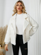 Pocketed Sherpa Zip Up Long Sleeve Jacket