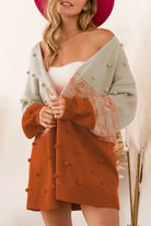- The pompom details on the cardigan add a whimsical and fun element to the design. The pompoms can be in coordinating or contrasting colors, creating a playful and youthful vibe.