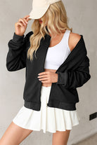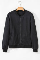 Texture Zip Up Baseball Collar Long Sleeve Jacket