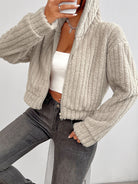 Zip Up Long Sleeve Fuzzy Hooded Jacket