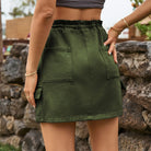 Drawstring Straight Hem Denim Mini Skirt with Pocket