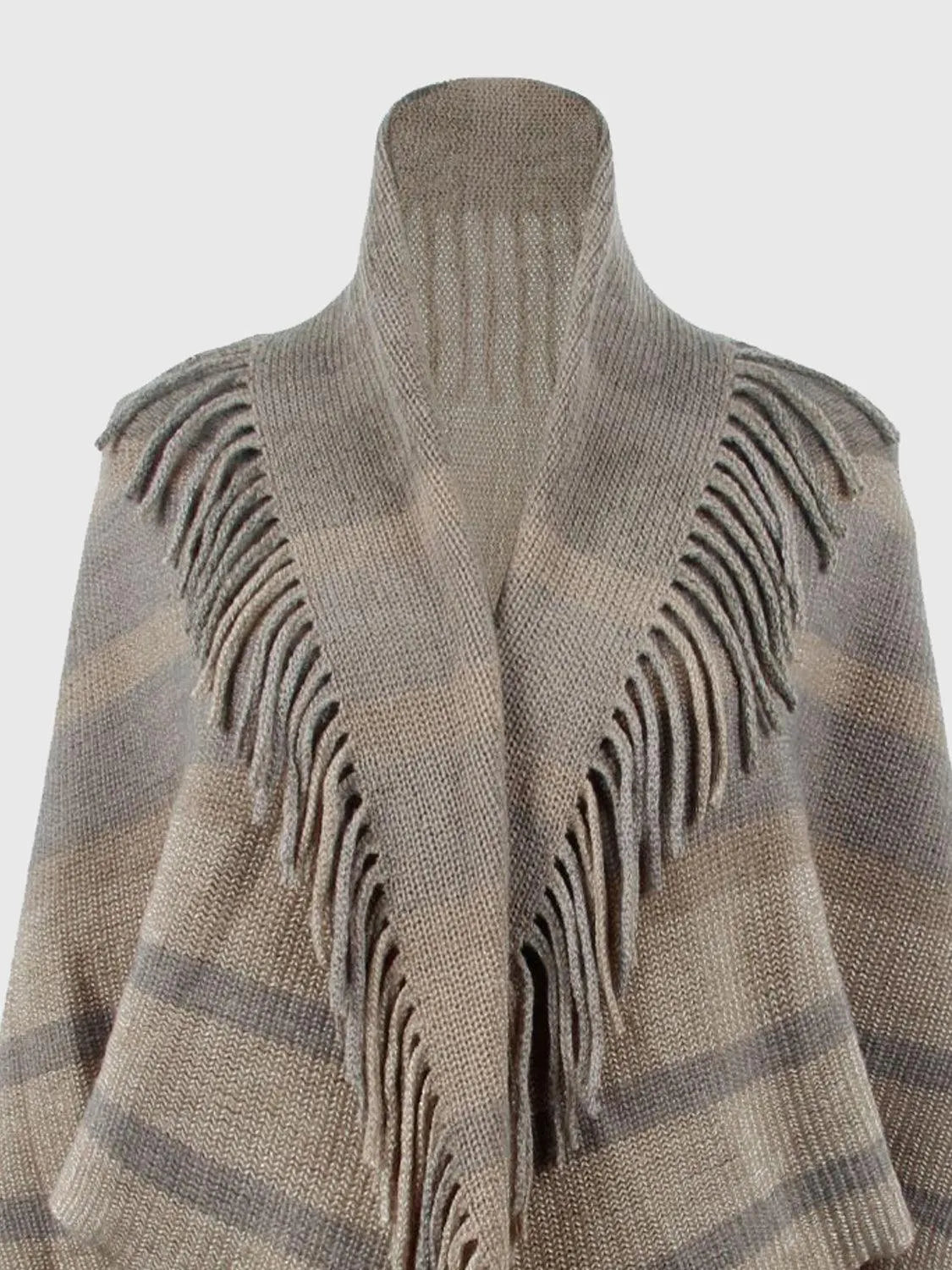 Fringe Detail Open Front Poncho