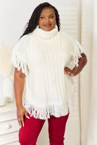 The perfect addition to your fall and winter wardrobe. This versatile poncho offers both warmth and fashion-forward flair, thanks to its chunky knit construction and chic turtleneck design. The eye-catching fringe detail adds a touch of boho charm, making it a standout piece for any occasion.