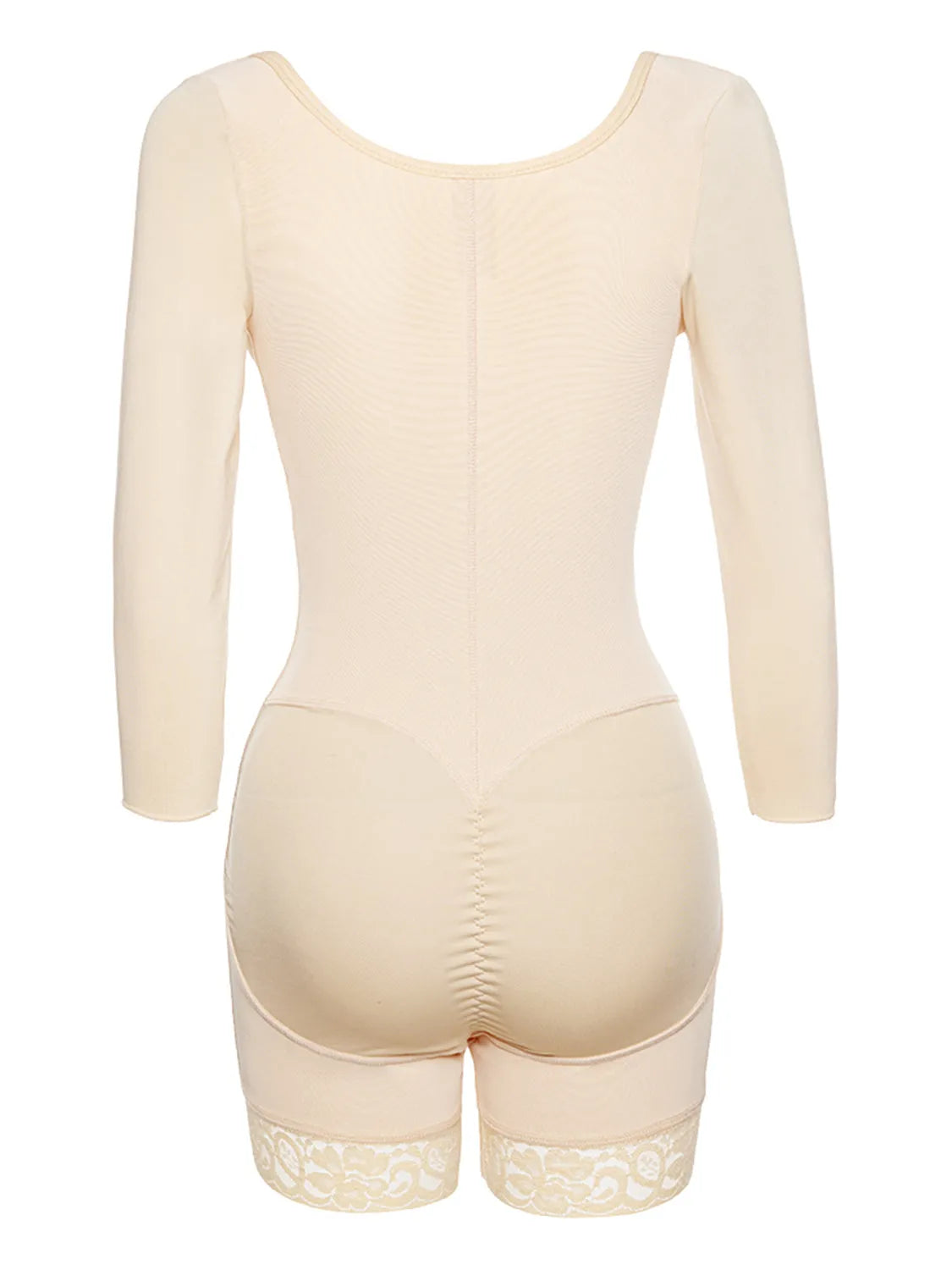 Full Size Zip Up Lace Detail Long Sleeve Shapewear
