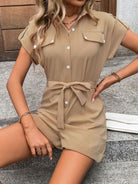 Perfee Collared Neck Tie Waist Romper with Pockets