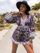 Printed Frill Half Button Balloon Sleeve Romper