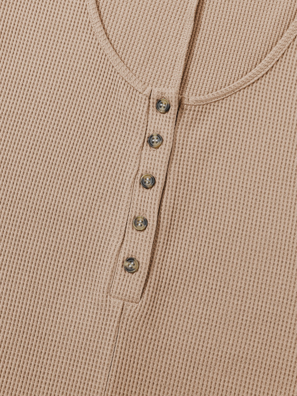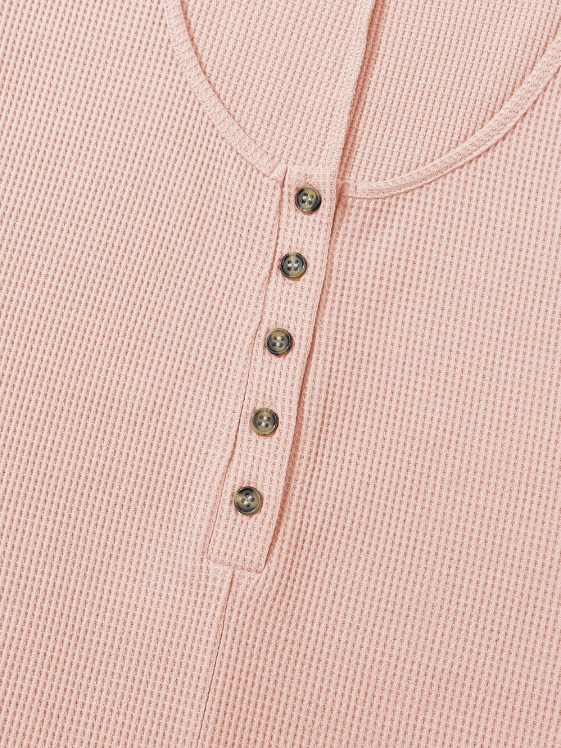 Waffle-Knit Half Button Sleeveless Romper with Pockets