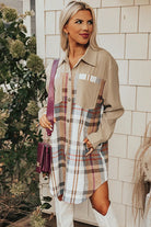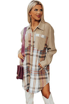 Don't miss out on this amazing deal. Get your Khaki Plaid Patchwork Long Sleeve Jacket today!