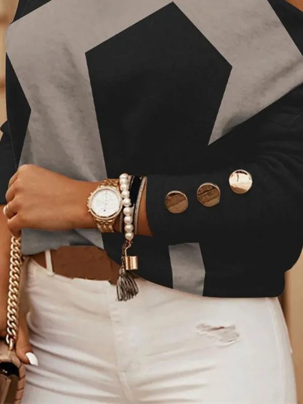 The new check geometric pattern printed long-sleeved chain halter neck printed button-decorated top is suitable for many occasions, and the simple design makes the boring season colorful and interesting. A variety of collocation options make you confident and beautiful. It fits snugly without restricting your movement. Key features include. - comfortable fabric casual daily wear