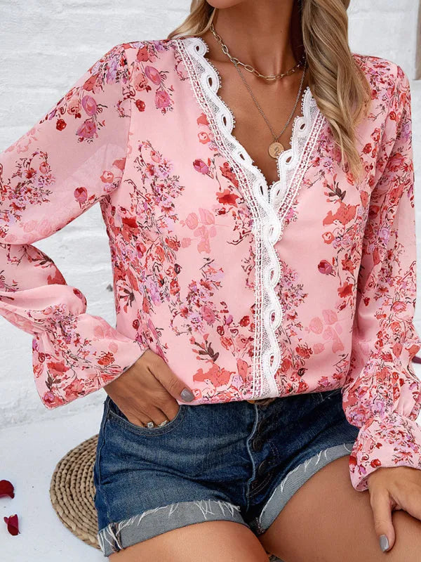 New fashionable women's casual printed long-sleeved V-neck shirt