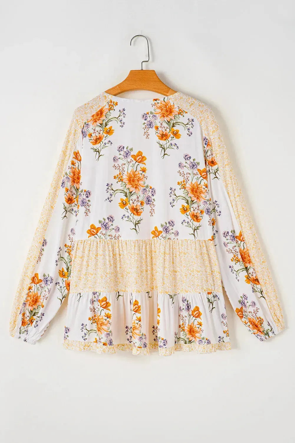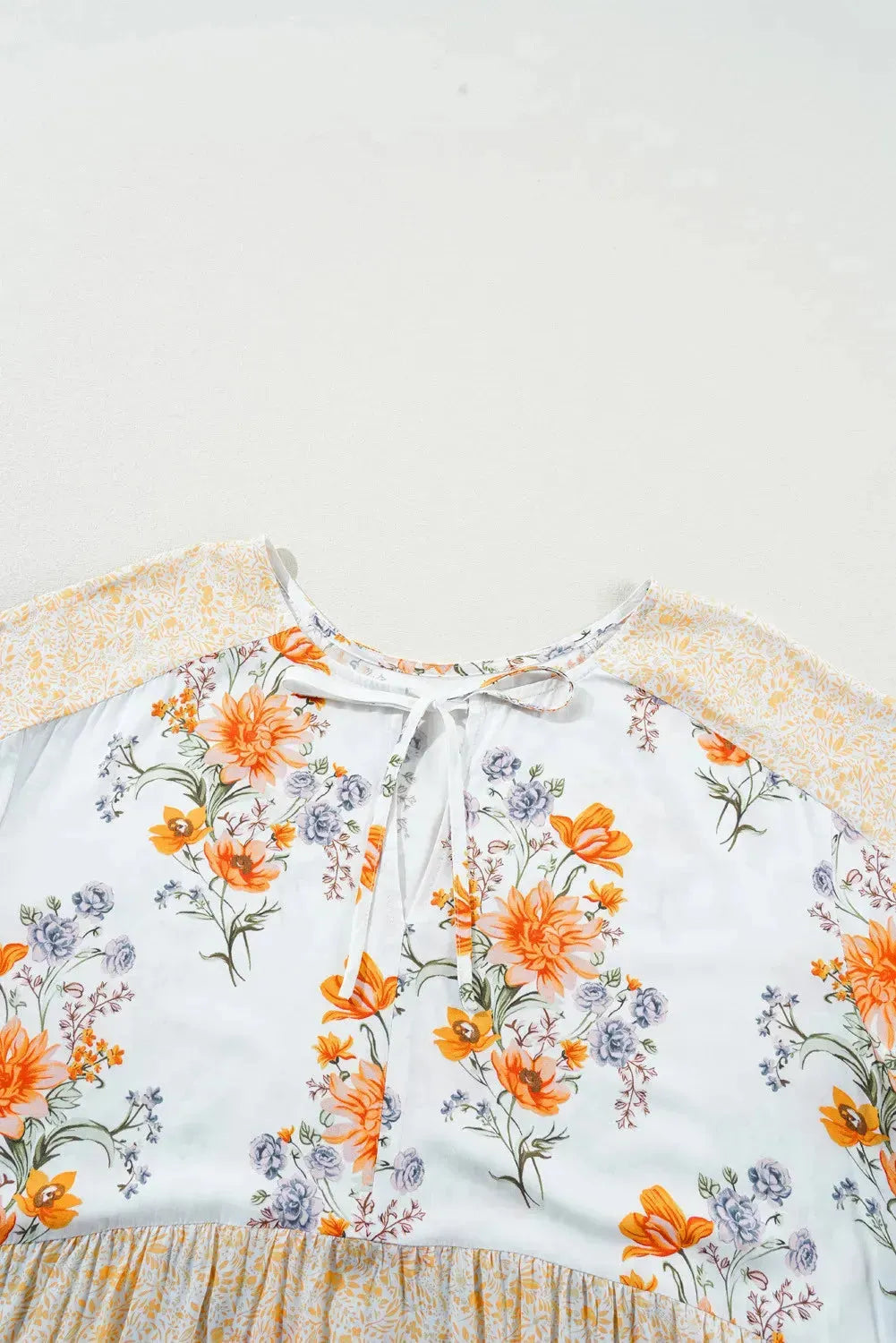 Plus Size Printed Tie Neck Long Sleeve Blouse