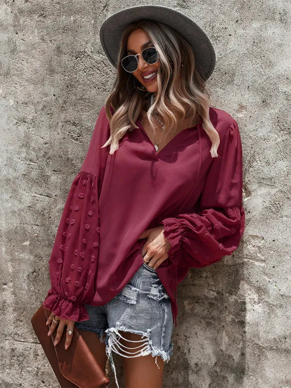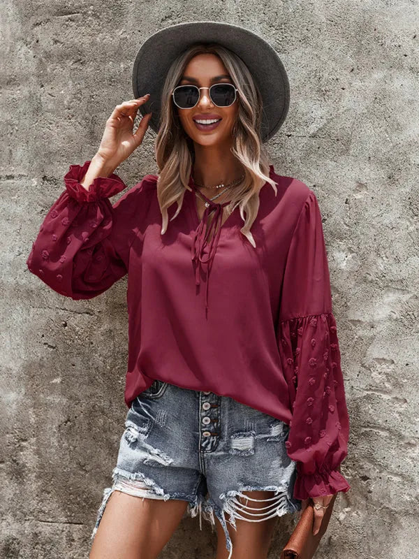 Women's Elegant Lace Stand Collar Puff Sleeve Shirt