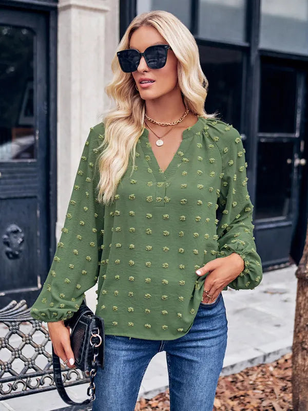 Women's new jacquard V-neck long-sleeved V-neck loose top
