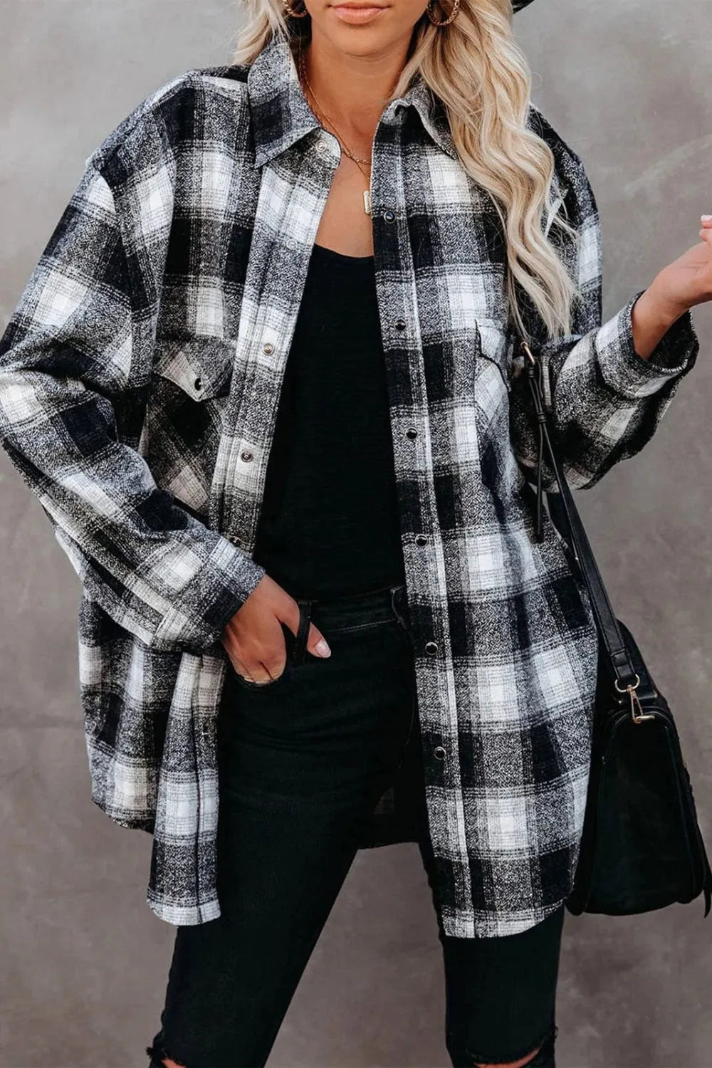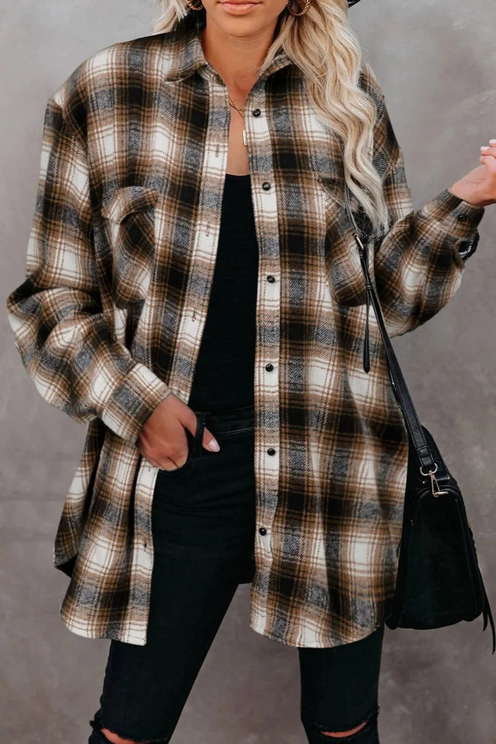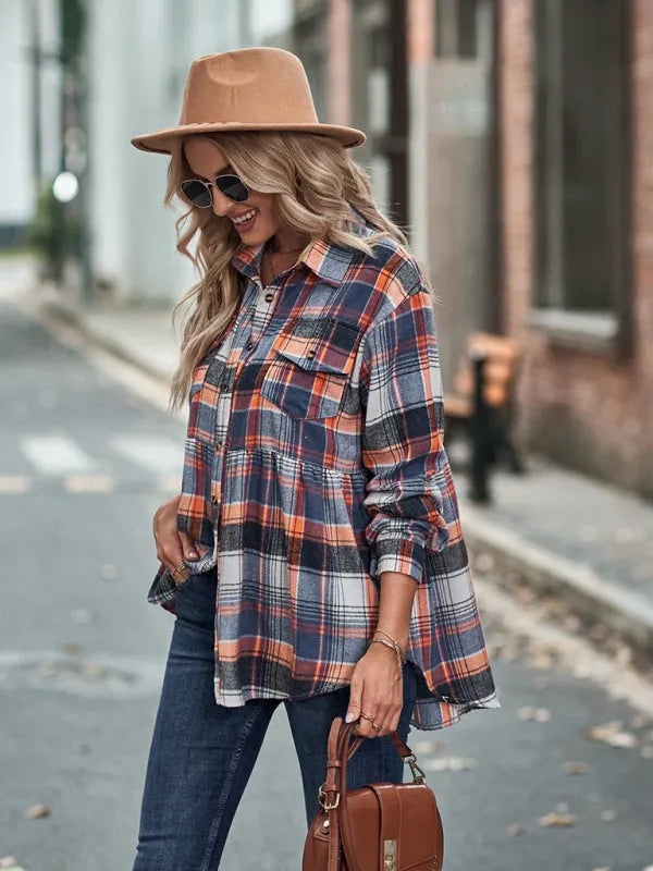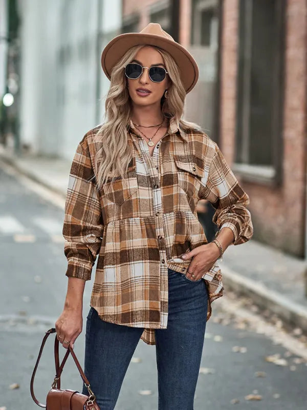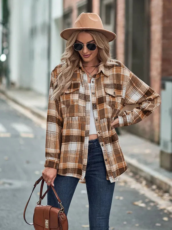 Full Size Plaid Collared Neck Long Sleeve Shirt