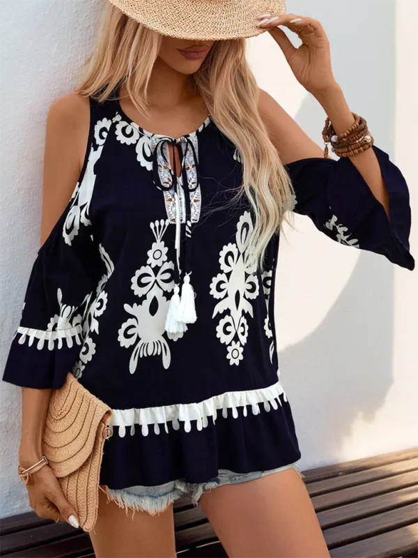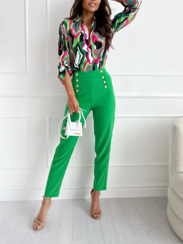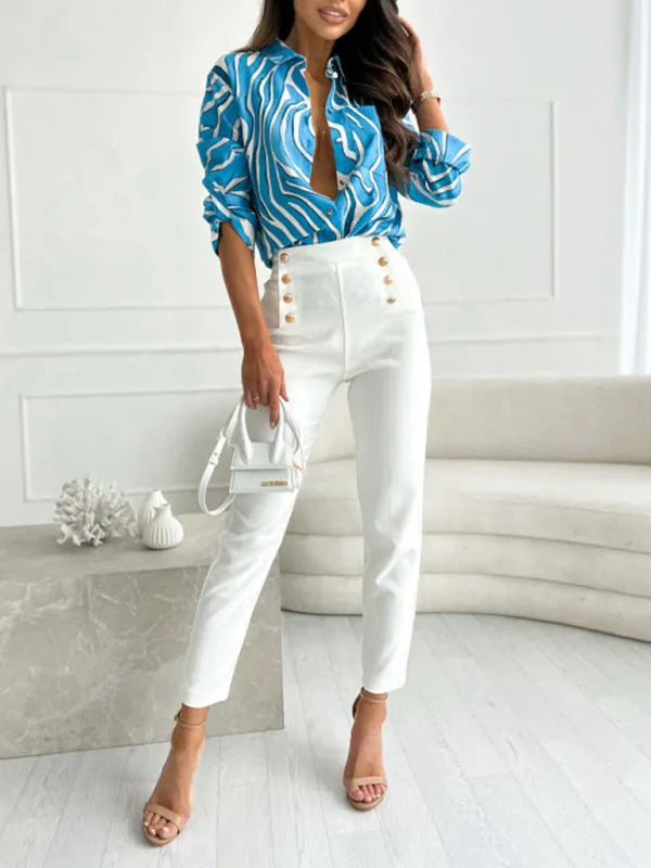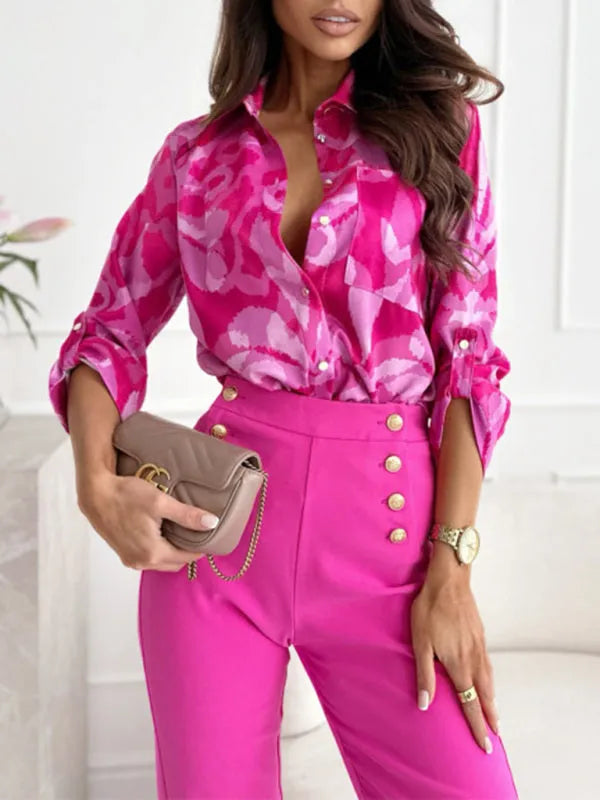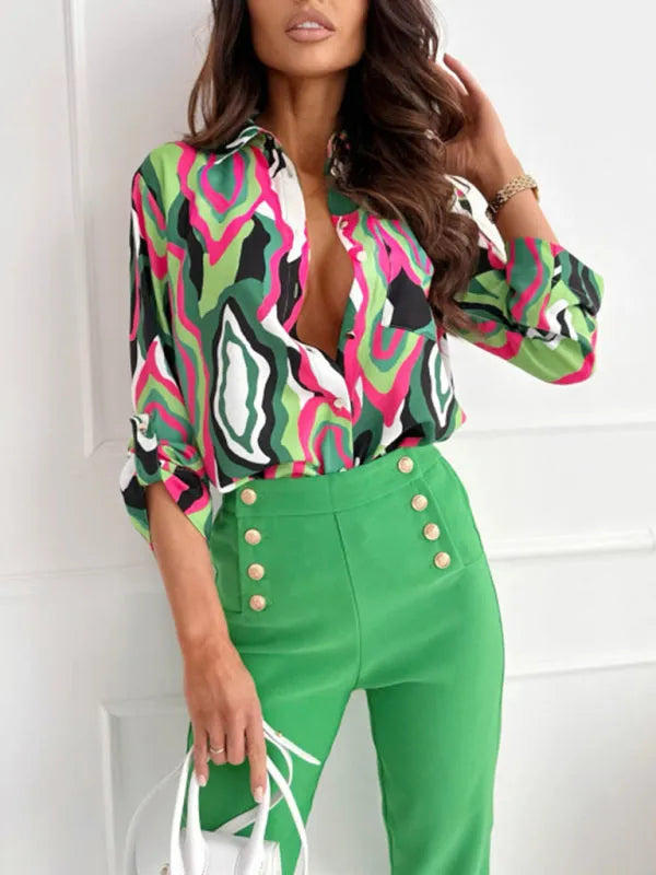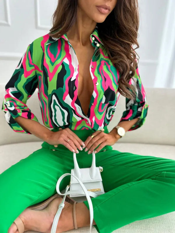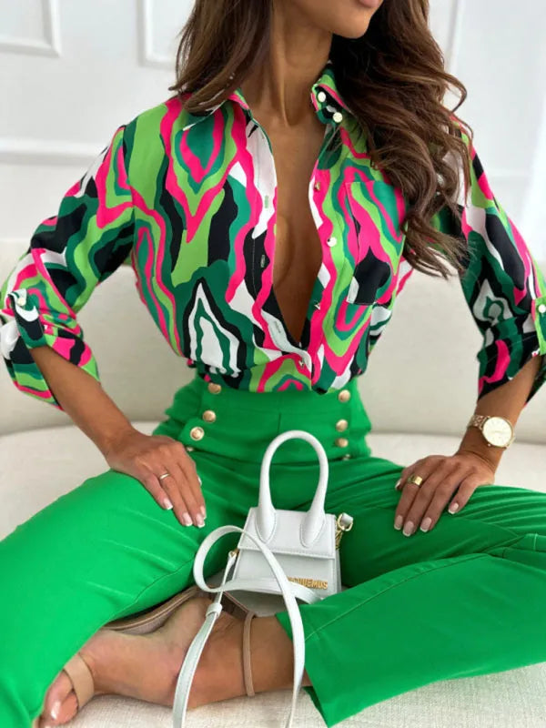 European and American fashion new long sleeve printed shirt women