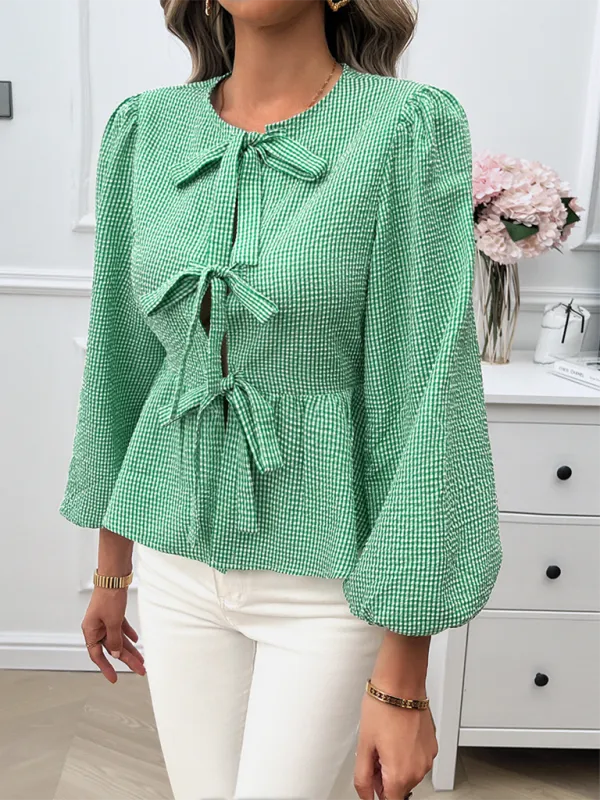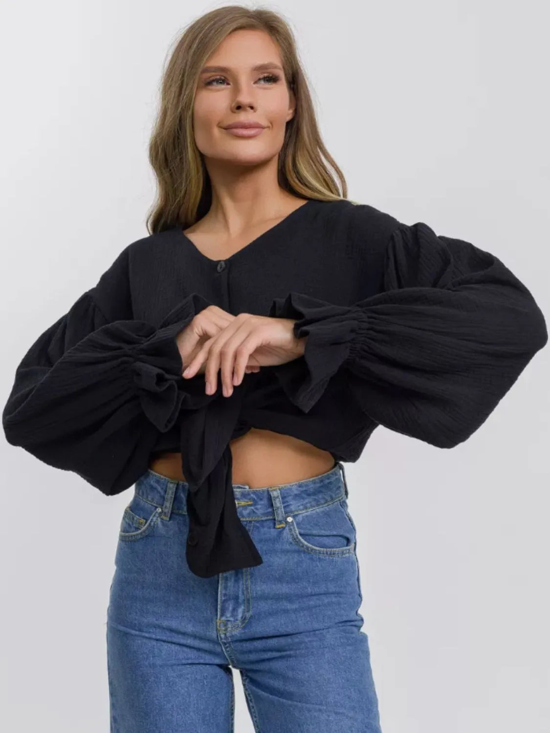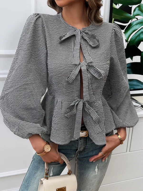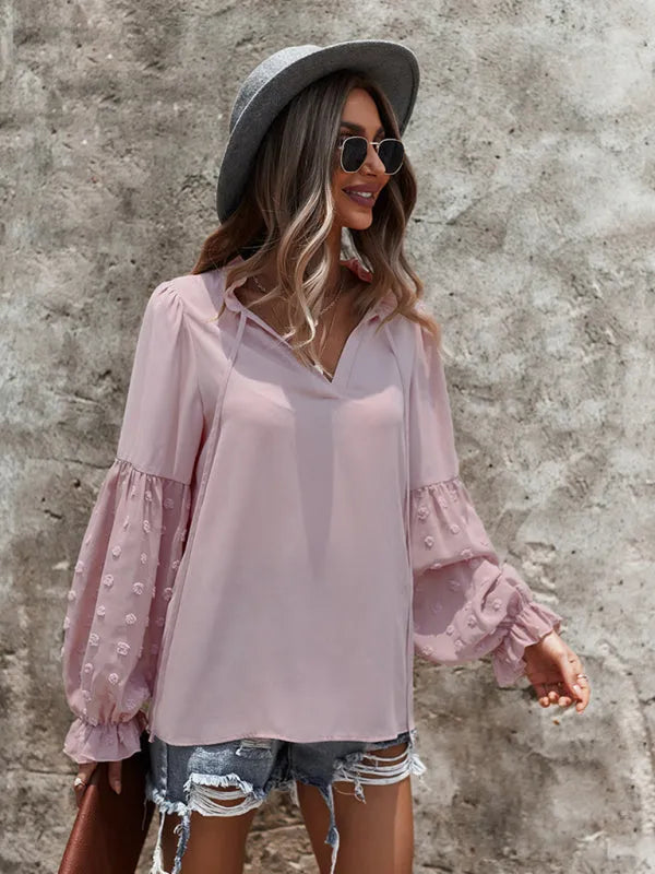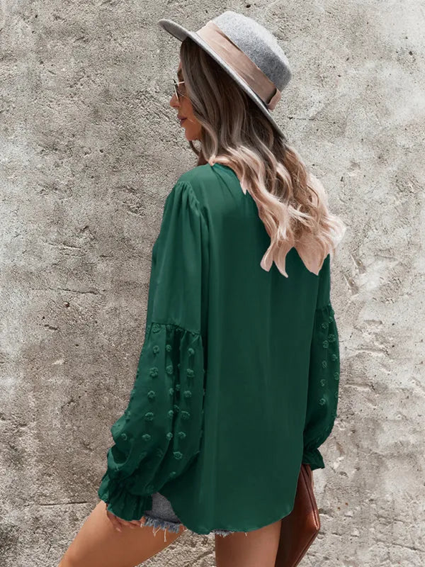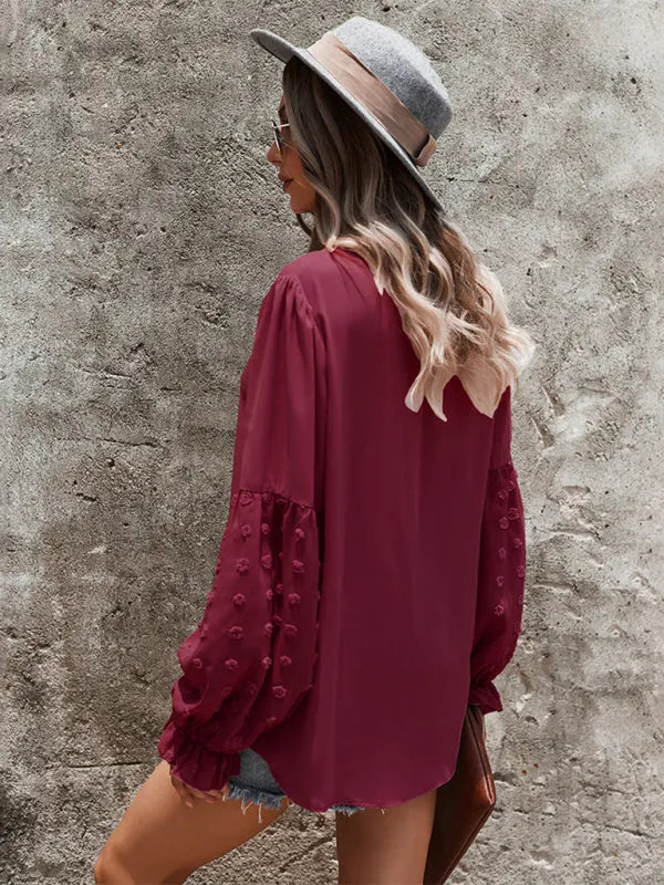 Women's Elegant Lace Stand Collar Puff Sleeve Shirt