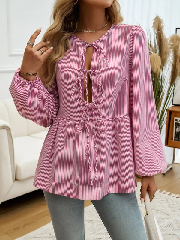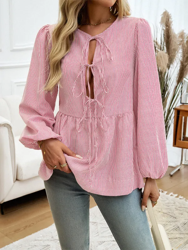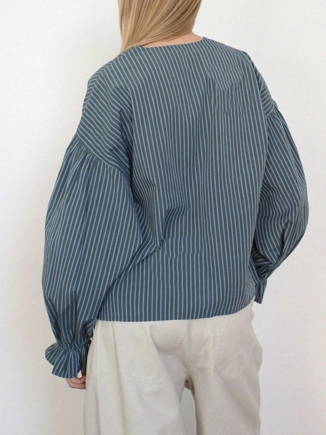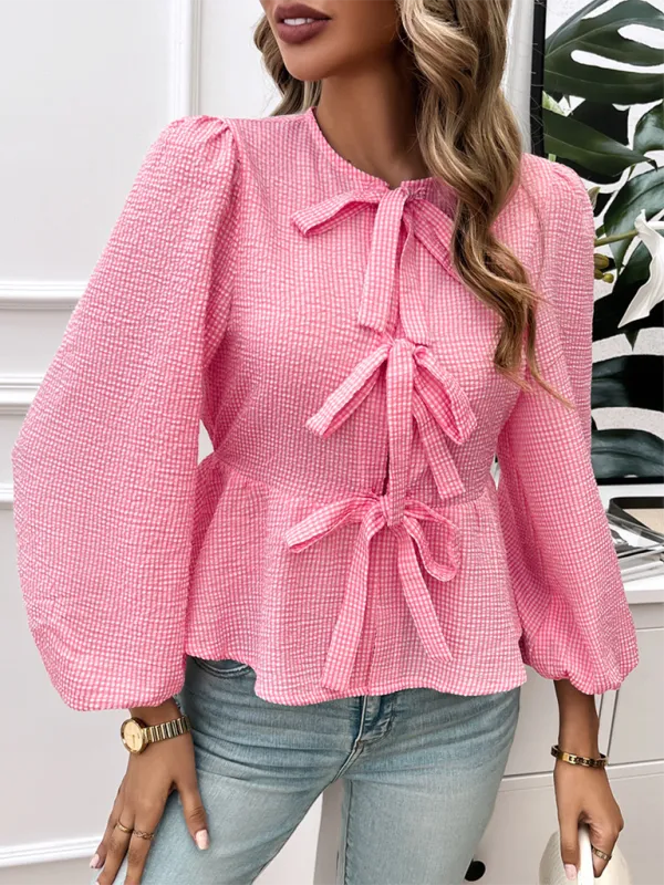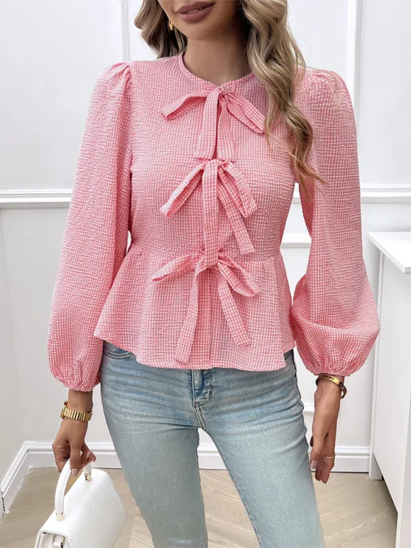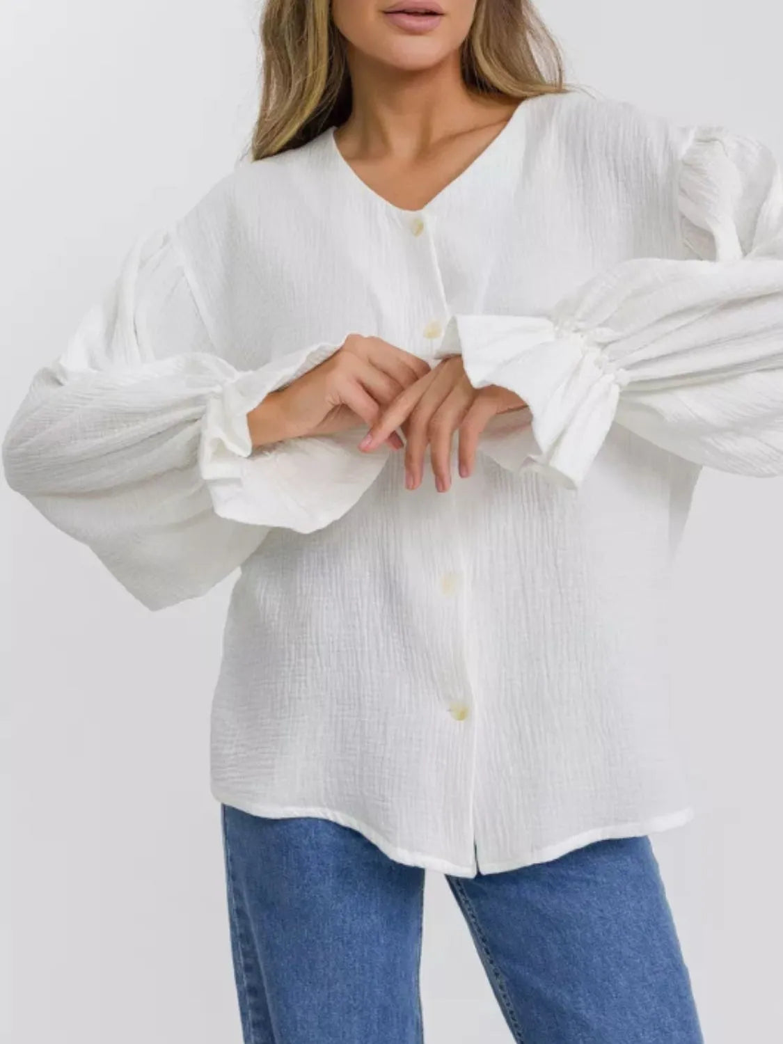 Women's Elegant Lace Stand Collar Puff Sleeve Shirt