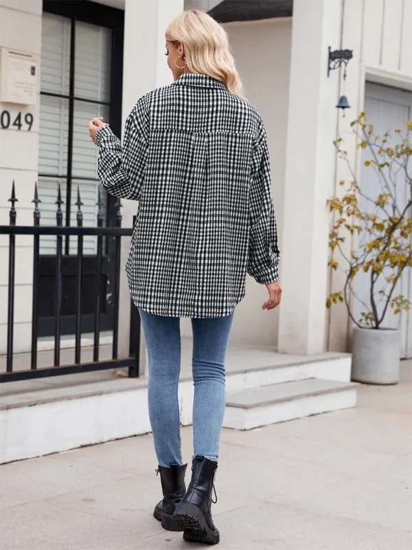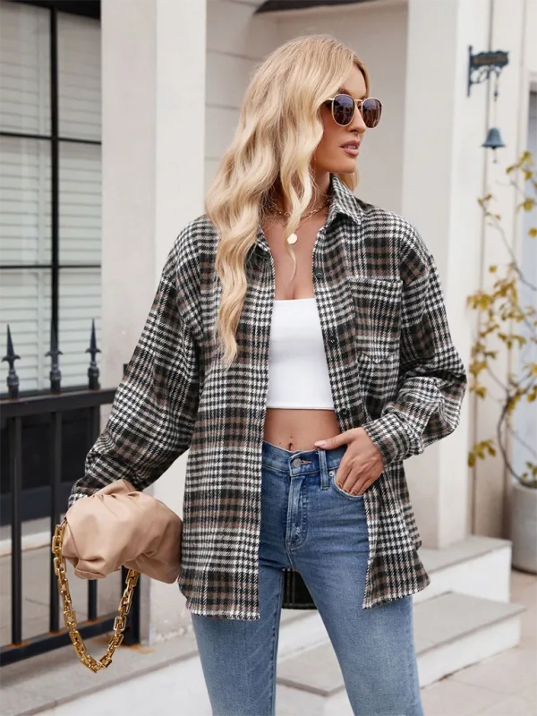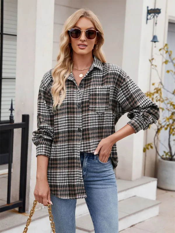 New Casual Fashion Houndstooth Button Flannel Tweed Shirt