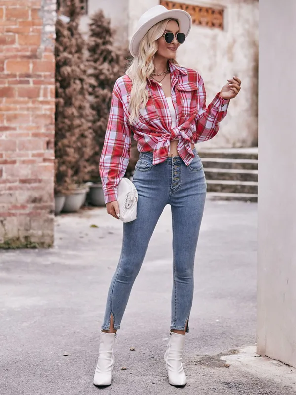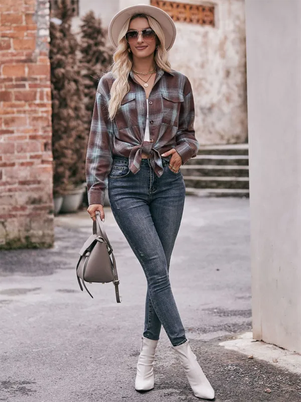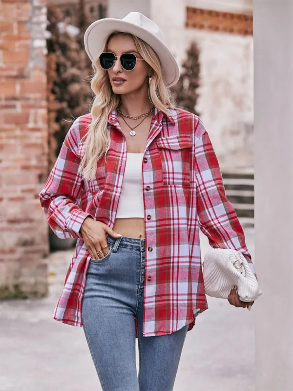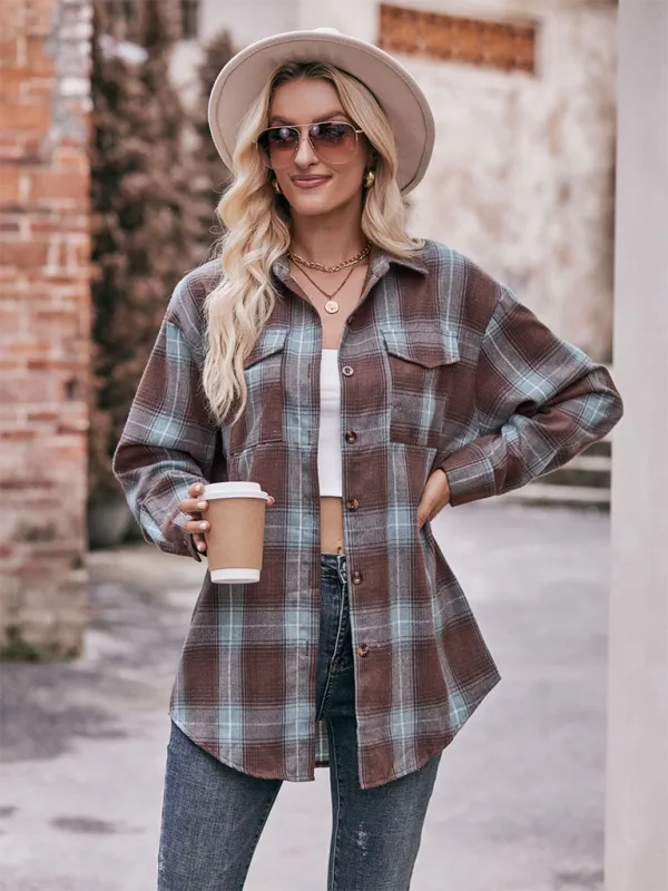 Women's Casual Fashion Oversize Loose Plaid Shirt