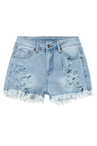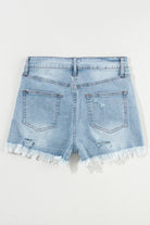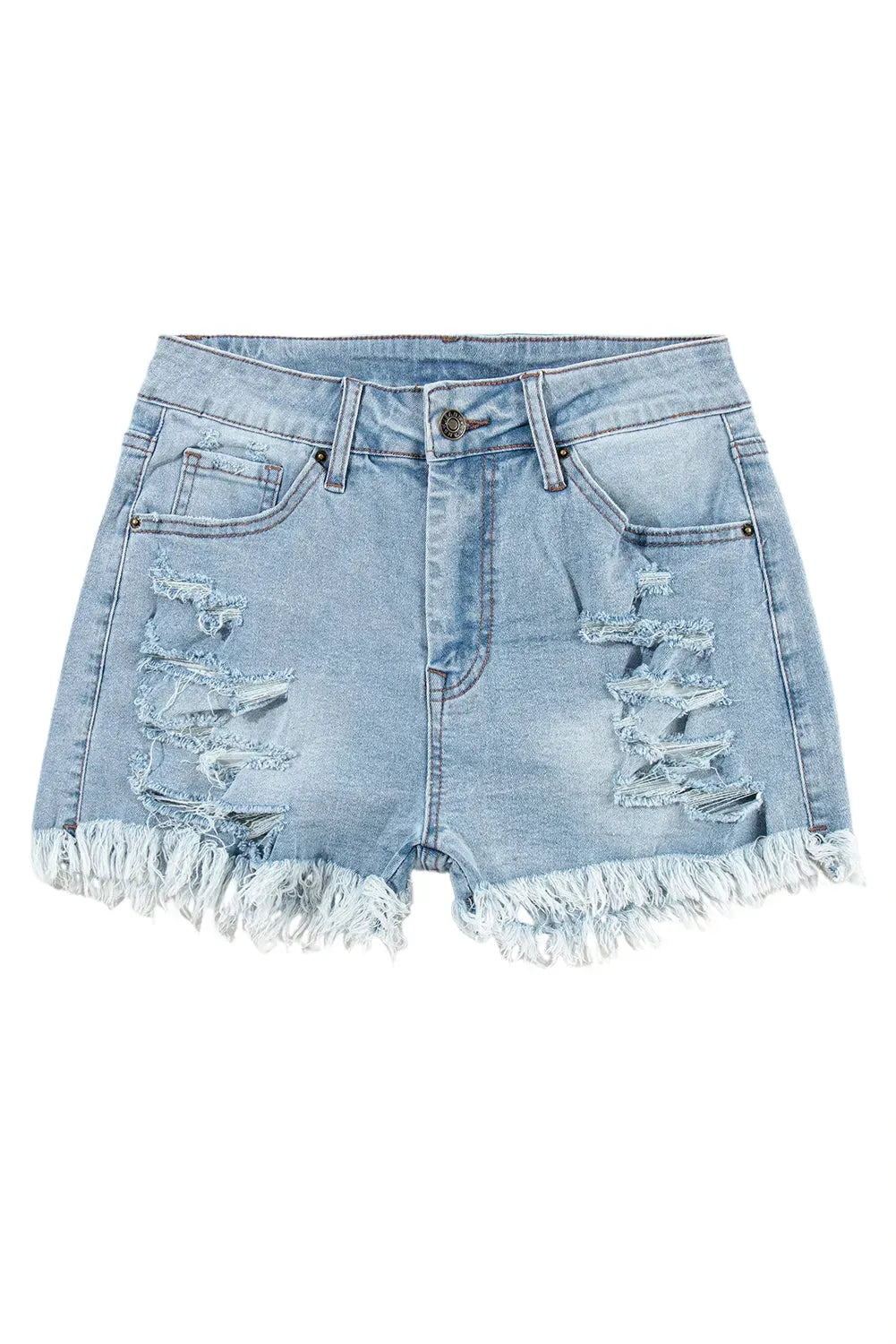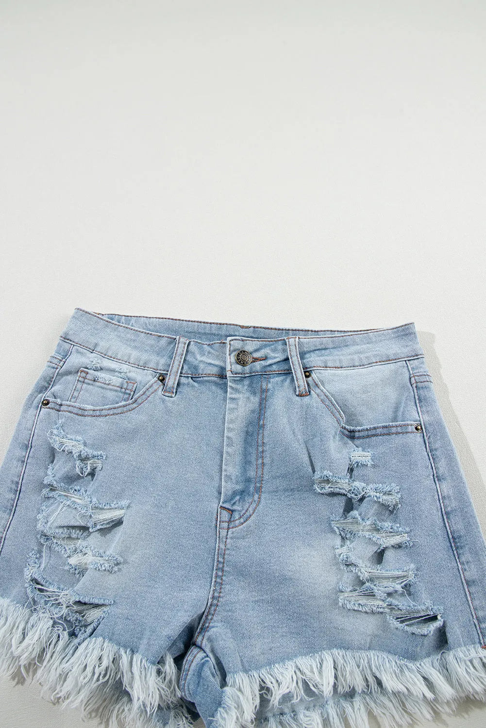 Light Blue Distressed Ripped Raw Hem High Waist Denim Shorts
