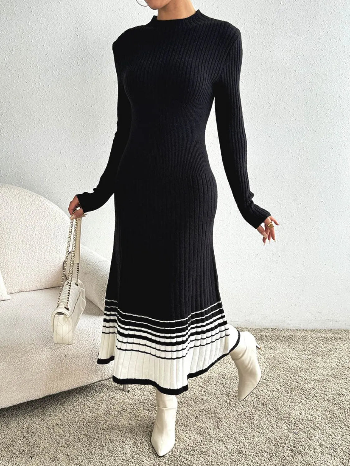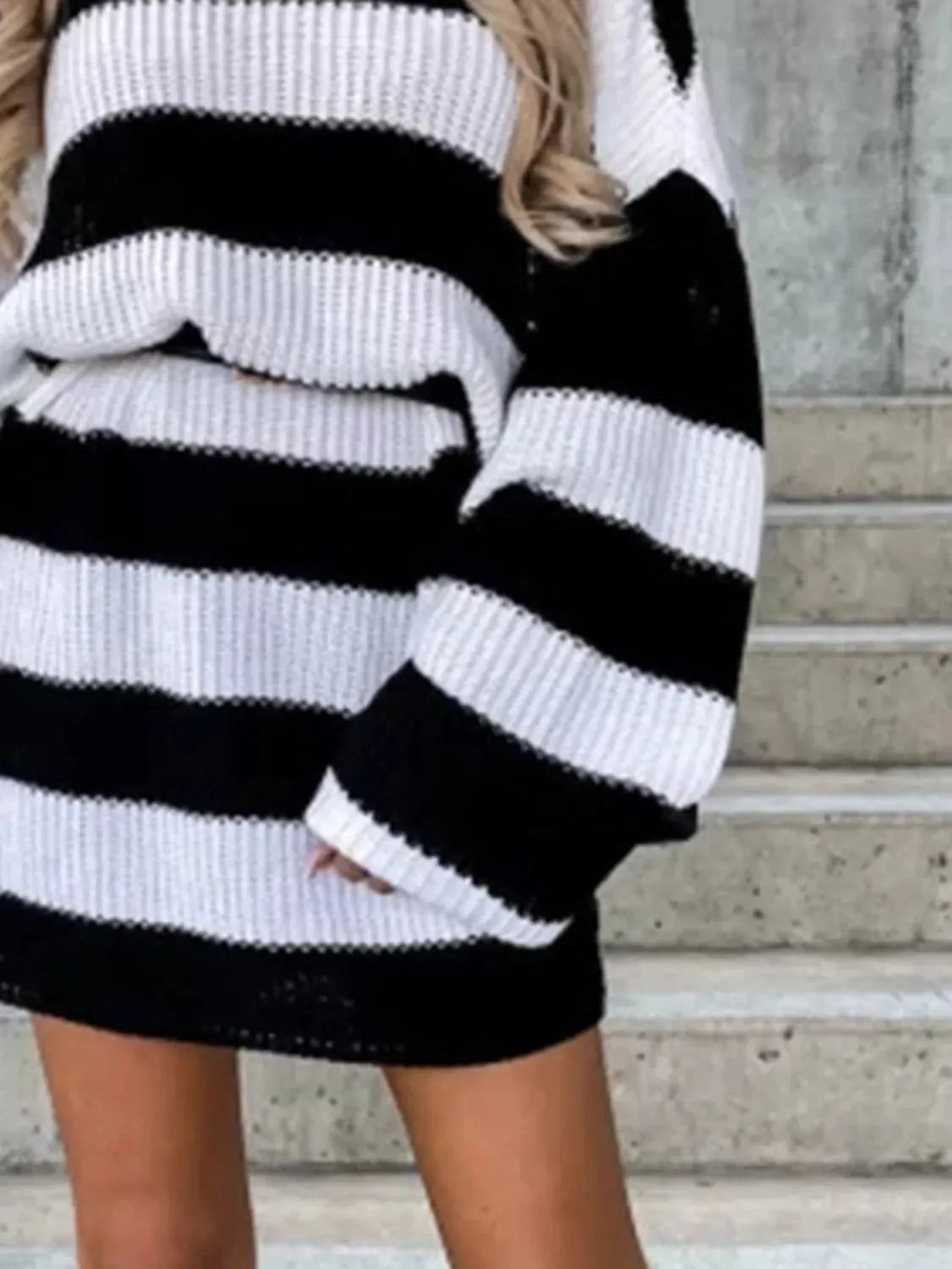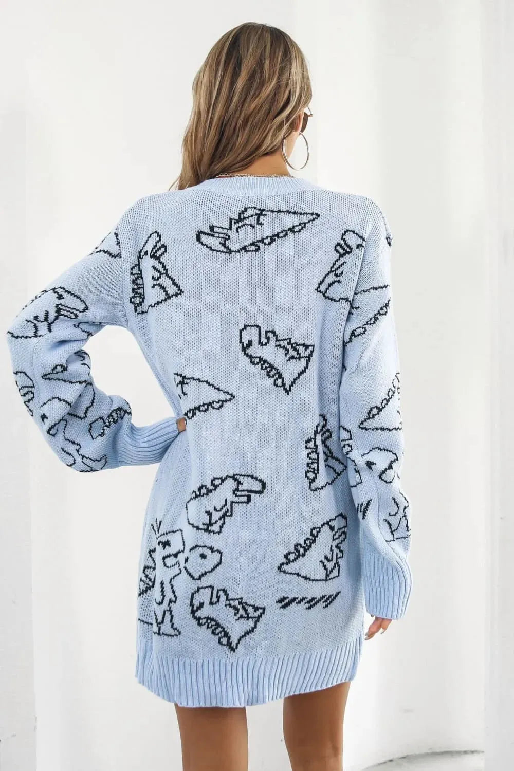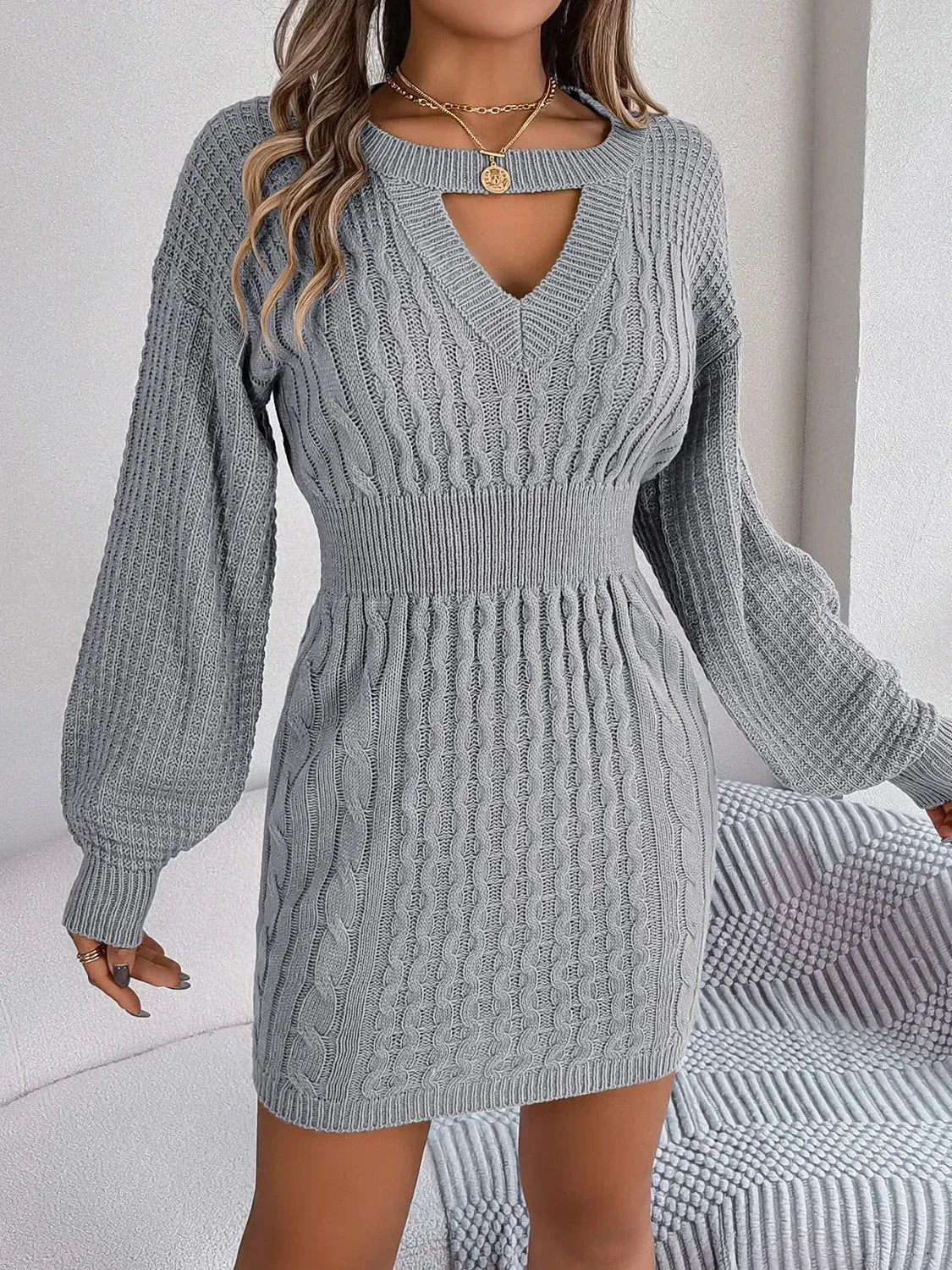 Buttoned Cable-Knit V-Neck Sweater Dress
