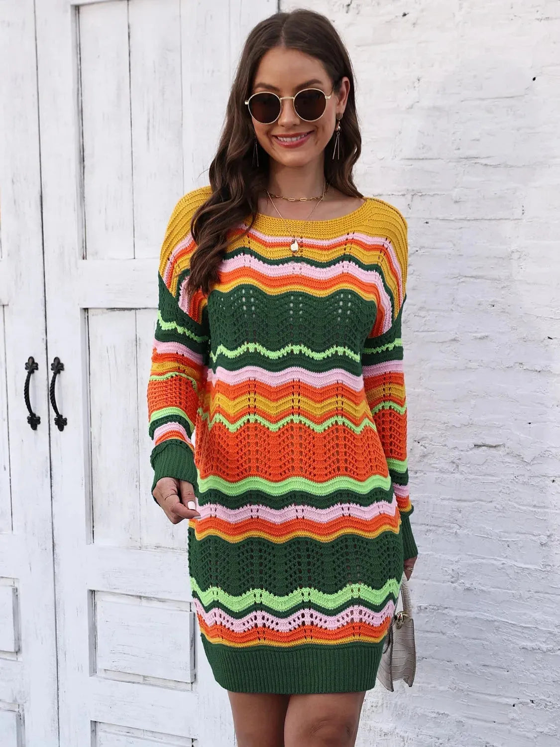 V-Neck Short Sleeve Fringe Hem Knit Dress