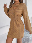 Cable-Knit Cutout Round Neck Slit Sweater Dress