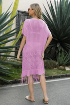 V-Neck Short Sleeve Fringe Hem Knit Dress