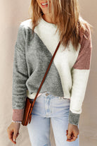 Color Block Round Neck Dropped Shoulder Pullover Sweater