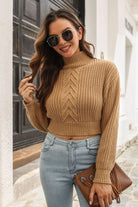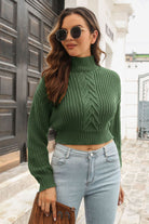 Cropped Mock Neck Cable-Knit Pullover Sweater