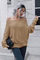Off-Shoulder Ribbed Long Sleeve Pullover Sweater