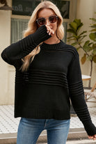 Round Neck Openwork Long Sleeve Pullover Sweater