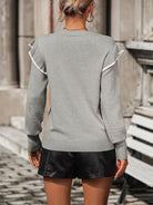 Round Neck Ruffle Trim Long Sleeve Pullover Sweater