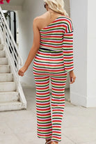 Striped Single Shoulder Top and Pants Knit Set