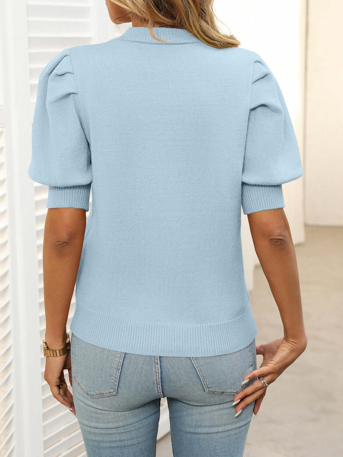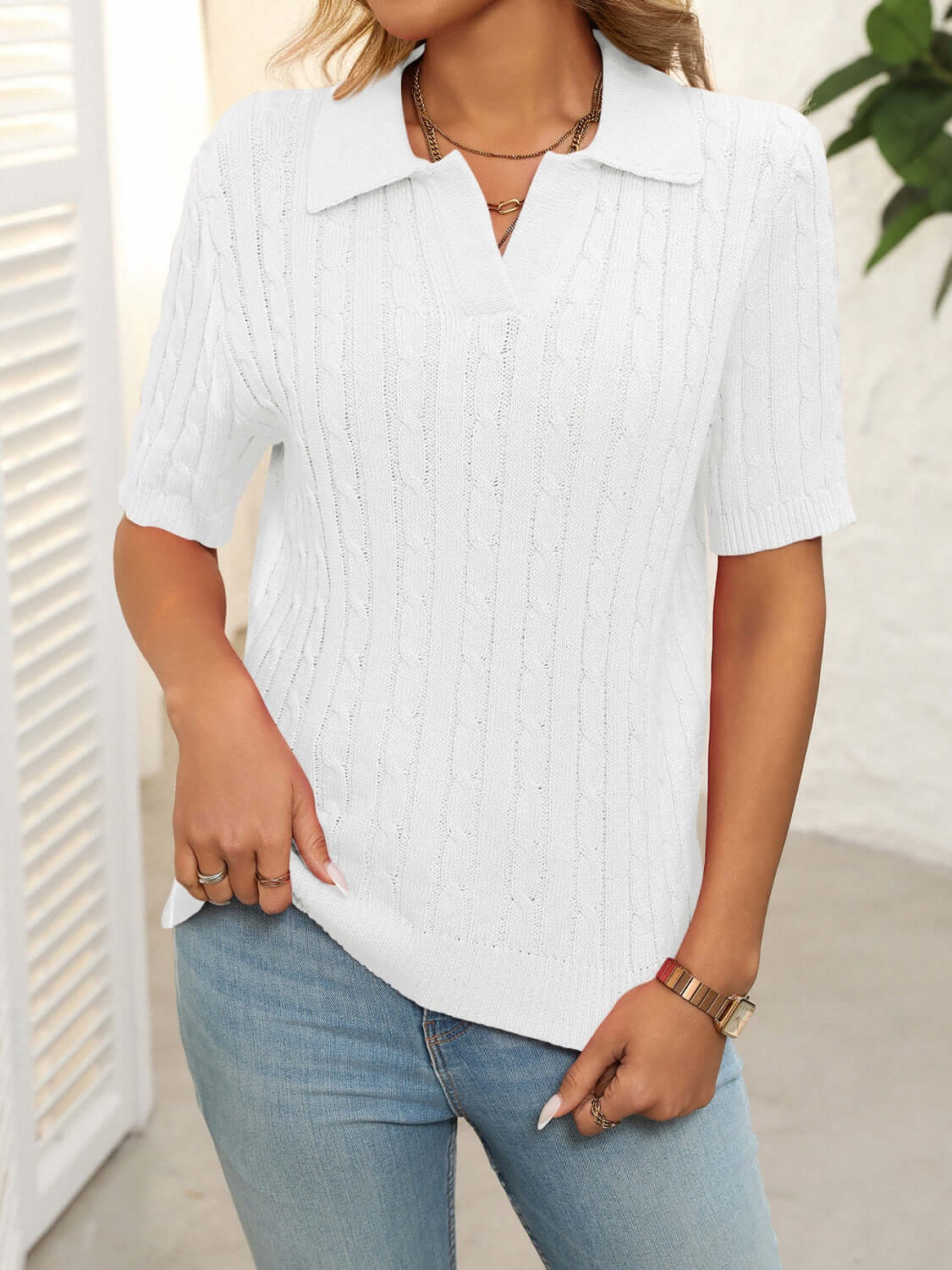 Mandy Cable Knit Johnny Collar Half Sleeve Sweater