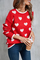 Angel Wings Contrast Trim Heart Round Neck Sweater