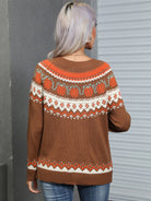 Angel Wings Geometric Round Neck Long Sleeve Sweater