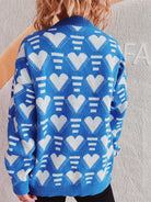 Heart Contrast Long Sleeve Dropped Shoulder Sweater