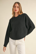 Mable Round Neck Dolman Sleeve Cropped Sweater