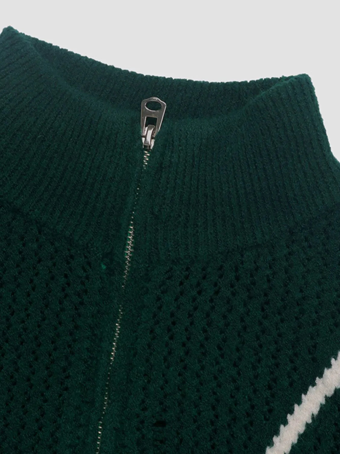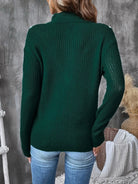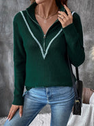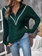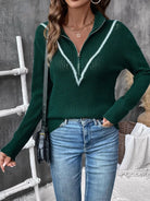 Perfee Contrast Half Zip Long Sleeve Sweater