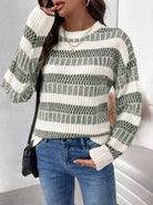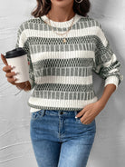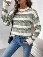 Perfee Contrast Round Neck Long Sleeve Sweater