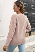 Ribbed Openwork Sleeve Round Neck Pullover Sweater