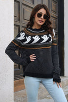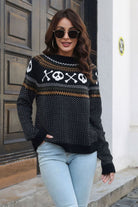 Ribbed Round Neck Long Sleeve Pullover Sweater